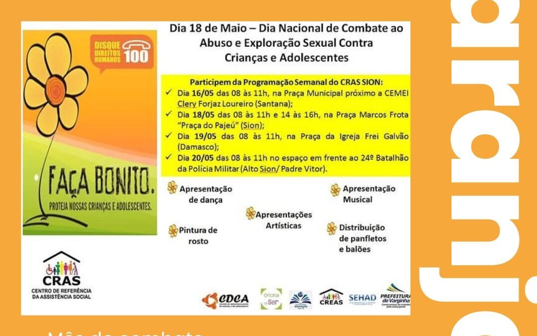 18 de maio – Dia Nacional de Combate ao Abuso e Exploração Sexual Contra Crianças e Adolescentes.